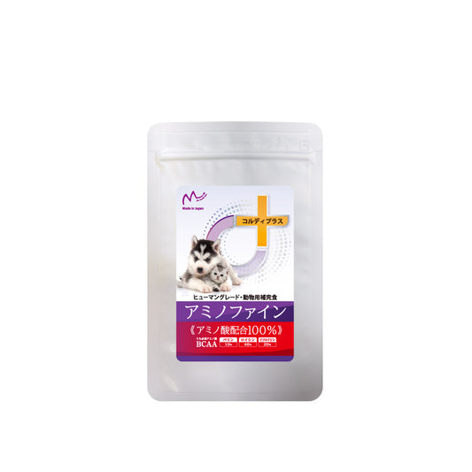 「アミノファイン」は、愛犬・愛猫のために特別に開発された、安全性の高いペット用アミノ酸サプリ。アミノ酸は筋肉維持・体力維持に欠かせない栄養素。アミノ酸が不足すると、作り出すために筋肉を分解して筋肉が痩せていきます。アミノ酸をバランスよく摂取できるサプリです。